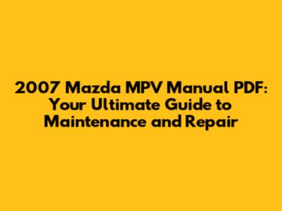 Where to Find Your 2007 Mazda MPV Manual PDF