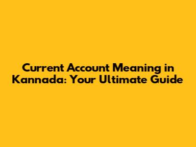 Current Account In Kannada: Your Ultimate Guide