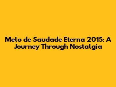 Melo De Saudade Eterna 2015: A Journey Through Nostalgia