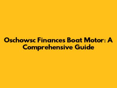 Oschowsc Finances Boat Motor: A Comprehensive Guide