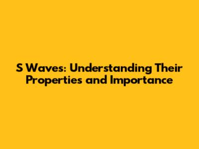 S Waves: Understanding Their Properties And Importance