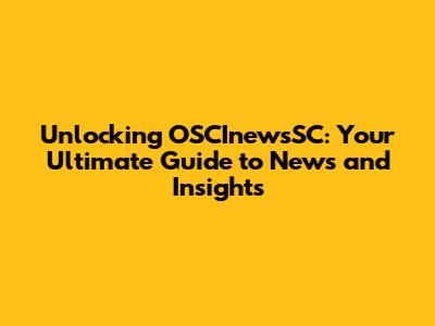 Unlocking OSCInewsSC: Your Guide To News And Insights